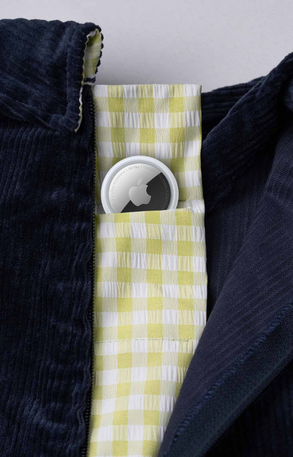 Pour la sécurité des enfants, un emplacement discret est prévu pour pouvoir insérer une puce de géolocalisation si besoin (type Airtag d'Apple).