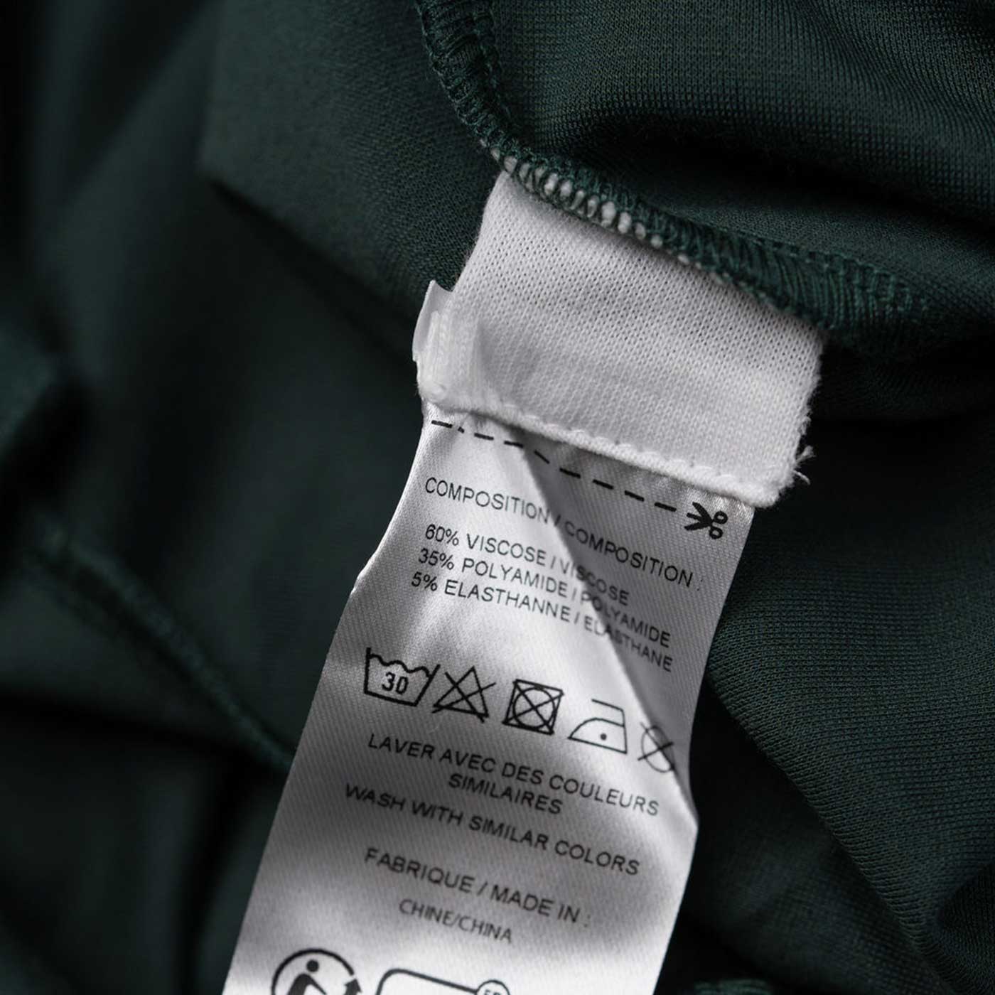L'étiquette avec la composition et les conseils d'entretien est cousue à l'intérieur, avec une extension de tissus. Aucune gêne possible si découpée !