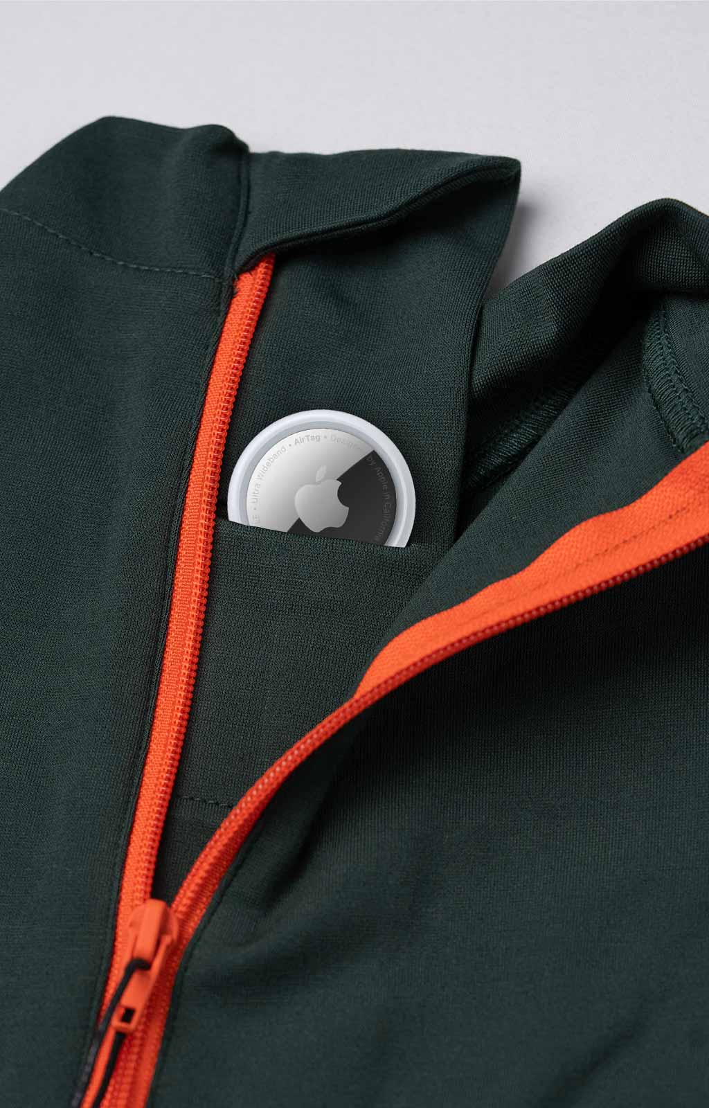 Pour la sécurité des enfants, un emplacement discret est prévu pour pouvoir insérer une puce de géolocalisation si besoin (type Airtag d'Apple).