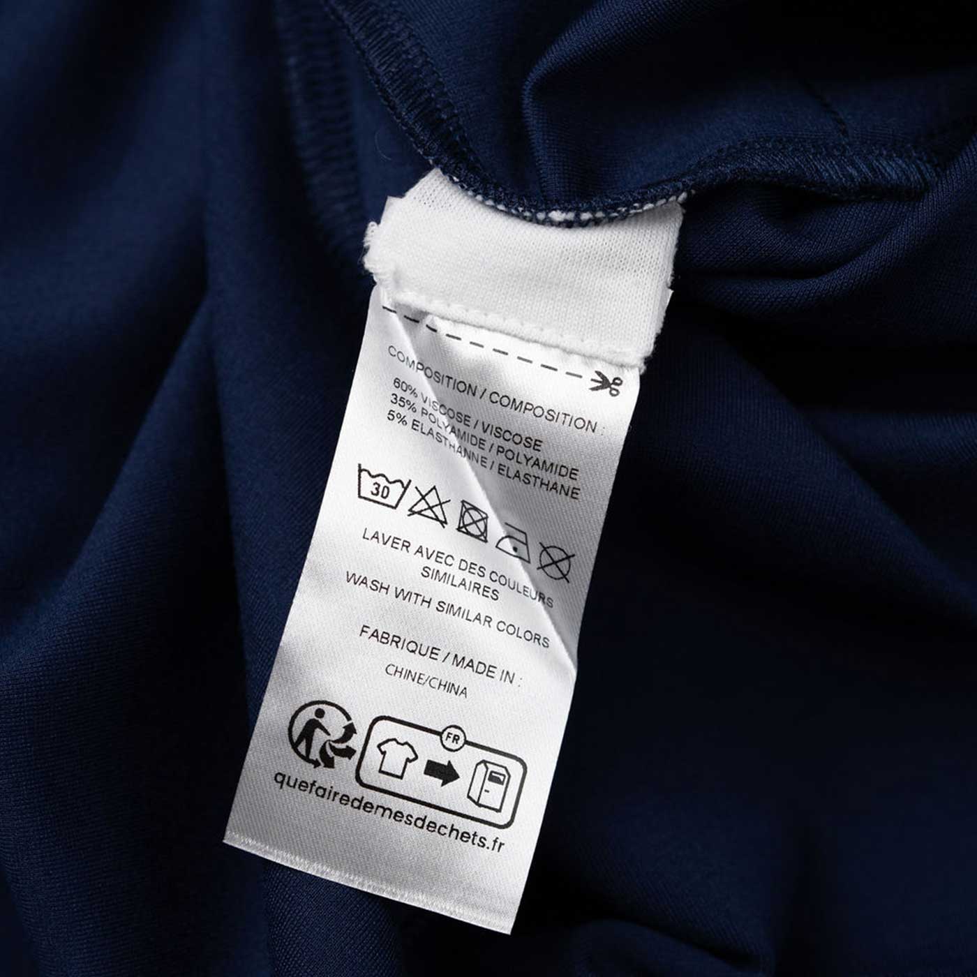 L'étiquette avec la composition et les conseils d'entretien est cousue à l'intérieur, avec une extension de tissus. Aucune gêne possible si découpée !