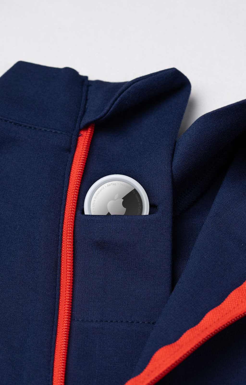 Pour la sécurité des enfants, un emplacement discret est prévu pour pouvoir insérer une puce de géolocalisation si besoin (type Airtag d'Apple).